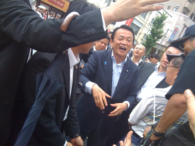 演説が終わって麻生さんが握手しにまわりはじめた時、後ろから